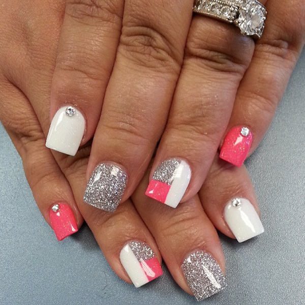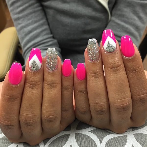 A variation of a hot pink polish being utilized with glittering silver and white. As you’ve seen, rain-drop designs are becoming more popular since they’re chic and easy to create for an adding bit of personality.