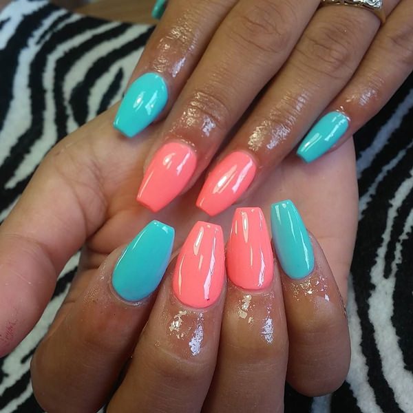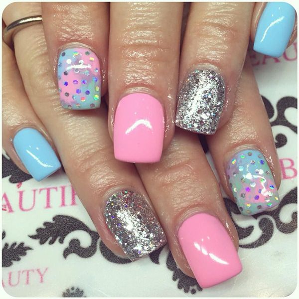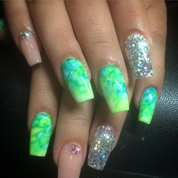 A perfect design for any season, these nails will surely stand out and grab the attention of your on-looking audience. The bright color mixed with glimmering sparkles won’t go unnoticed.