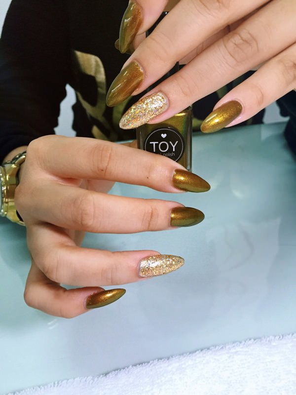 You’ll feel like an Egyptian Queen with nails resembling a honey gold, as if you’re truly made of the divine. These nails go great with golden rings and bracelets.