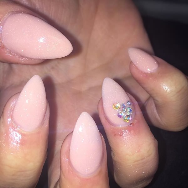 If you like subtle colors but enjoy a bit of dazzle, choose your natural matte color and add a gem to each finger.