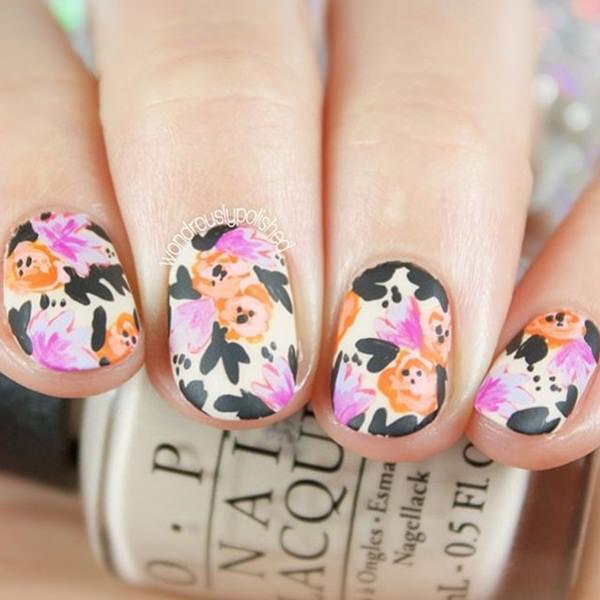 Flowers are a popular addition to any nail design, but the extra detail to the tips seen here make this design stand out. They’re similar to zebra stripes, but don’t look tacky or teen-ish.