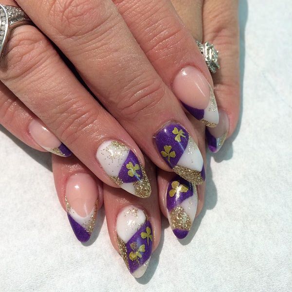 Not all lucky charms and clovers have to be combined with green. Here we have purple and gold instead – which still sport the lucky appeal and give tons of personality to your look.