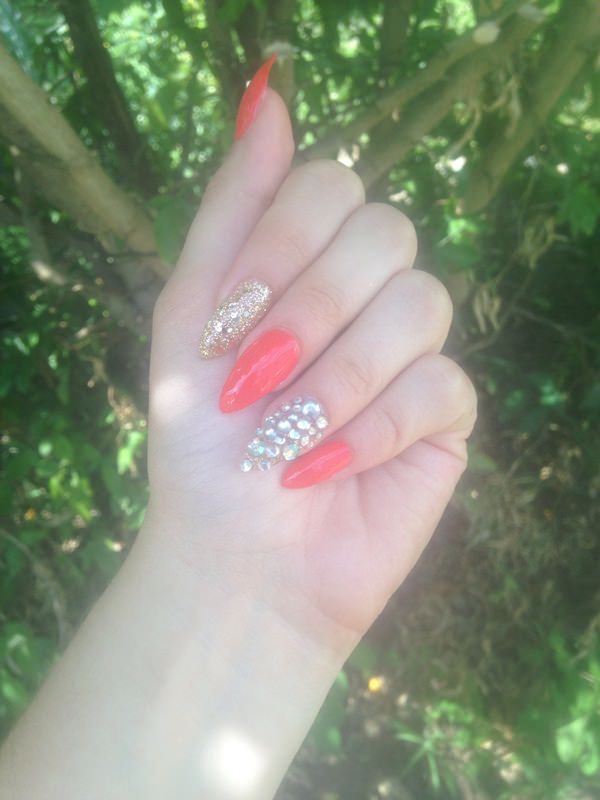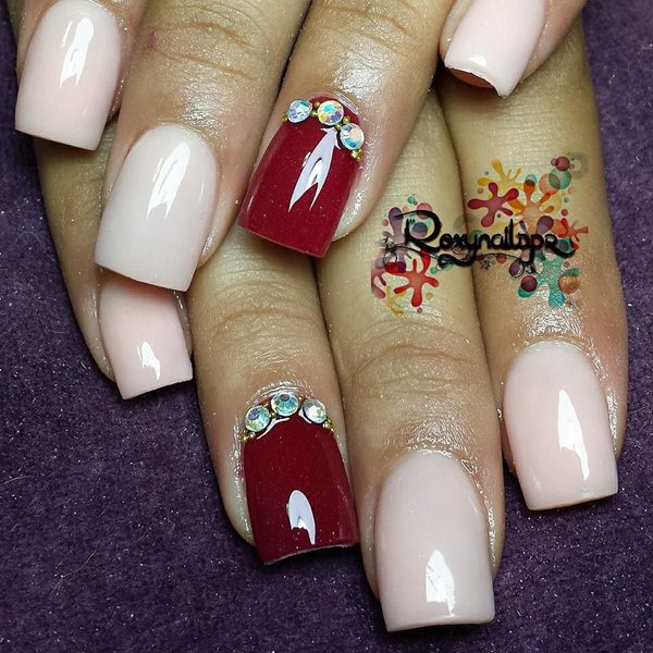 Not many would pair red nails with yellow gems, but the final result seen here is fiery and functional.