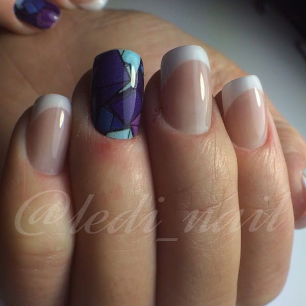 This French manicure has been given new appeal by adding a stained-glass design to the ring finger. Gorgeous!