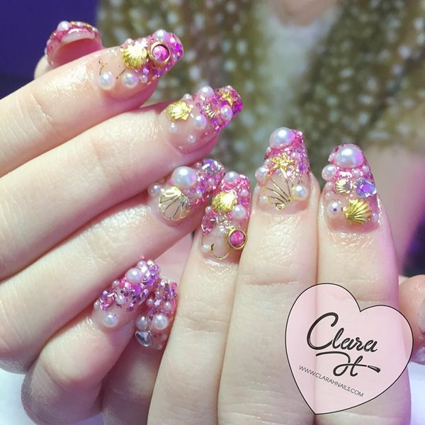 You’re practically growing a coral reef on your fingertips with a design sporting so many pearls, gems, and treasures!