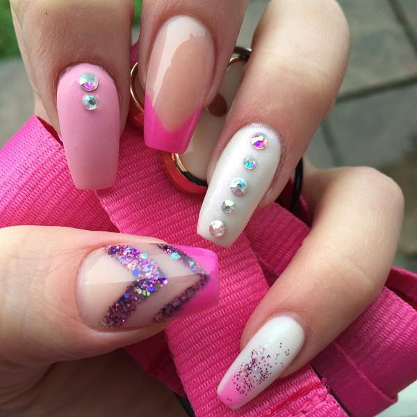 Calling all pink lovers, you’re sure to grab attention with striking beauties like these. Drip a bit of pink and purple on the white nails to make it look like they’ve been paint splashed.