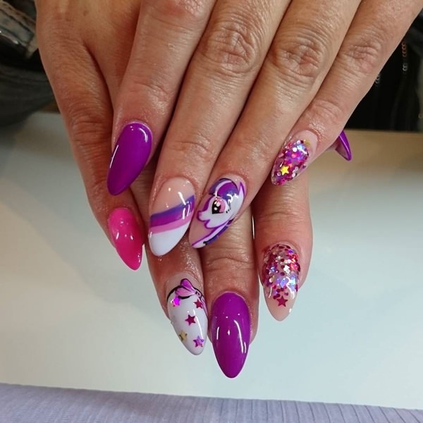If you have an old toy or cartoon you used to love or have a little girl in the household, these nails displaying the fav toy/cartoon are bound to bring a smile to you or your little girl’s face.