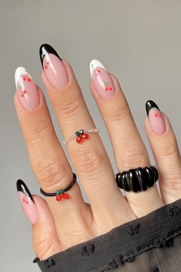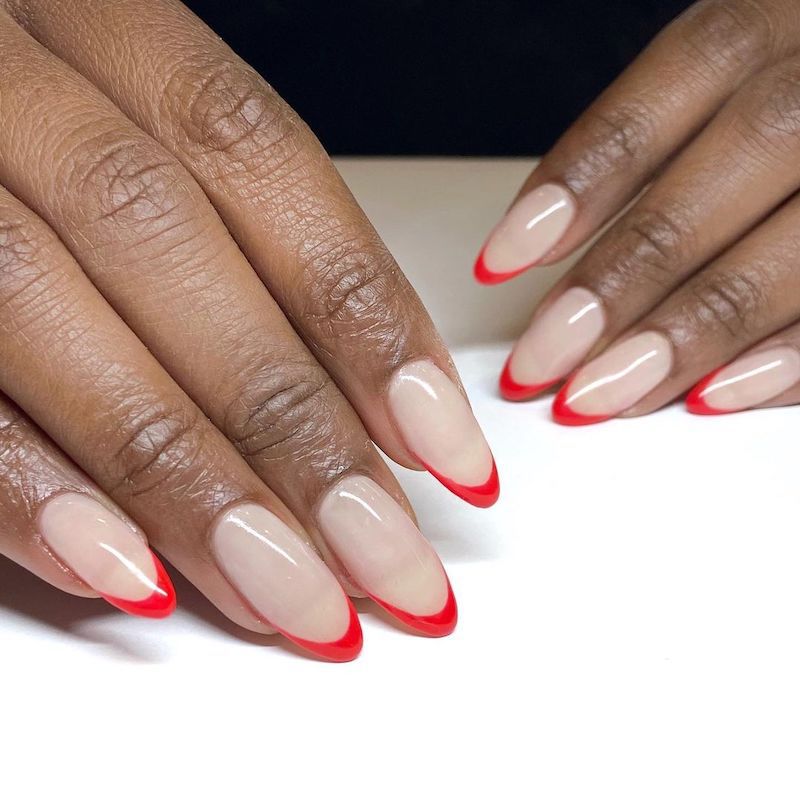 Even though the canvas is only centimeters big, the current nail trend toward French manicures have technicians shrinking it even smaller, with designs specifically created only for the tip of the nail. “French design that covers the nail tips [is popular],” says Amy Ling, founder of Sundays nail-care brand and salon. “It really draws the attention to the tip of the nails and the nail shape.” It’s no coincidence that when we went searching for almond nail designs, the majority we found centered around the French manicure.