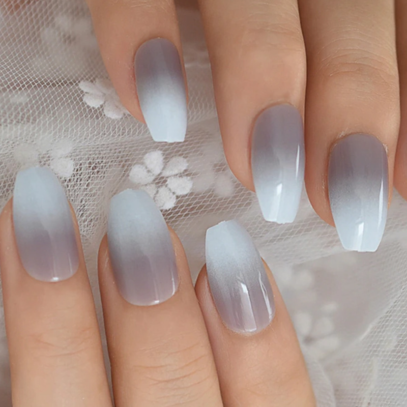 Fade out from a rich opaque white to transparent tips, or even blend with soft pastels for a dreamy finish.