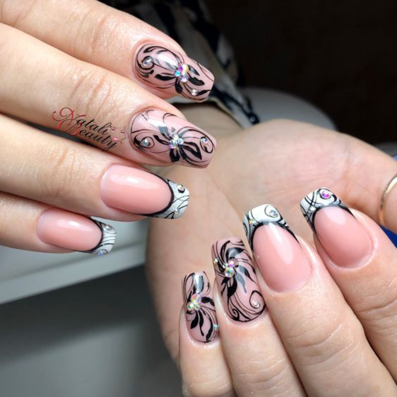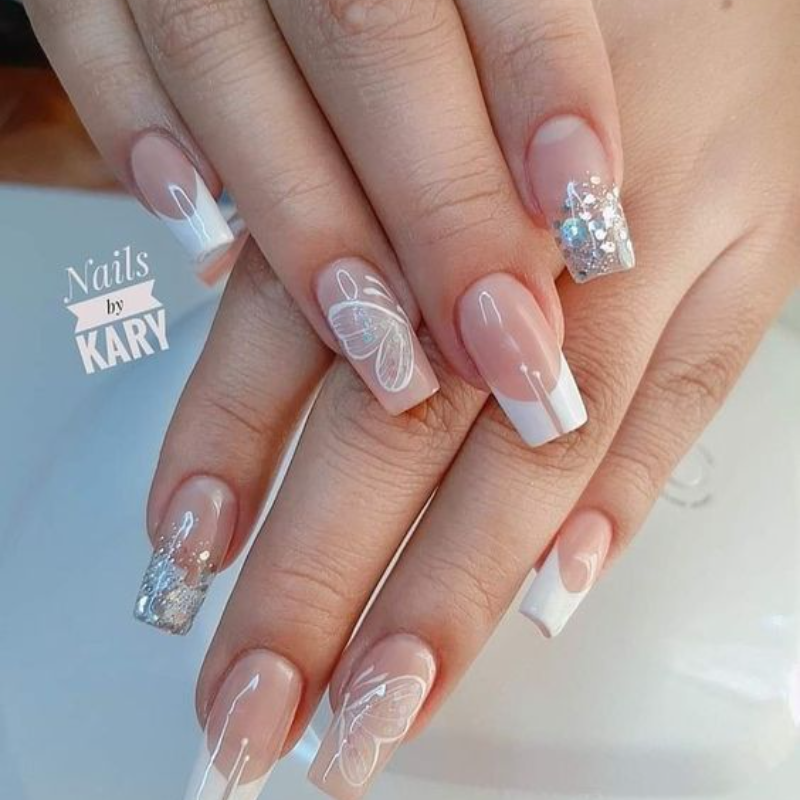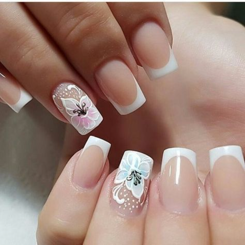 The classic French tip gets a twist with a broader white line or with intricate lace patterns on the tip.