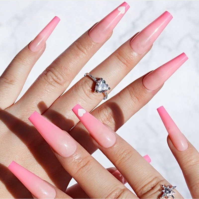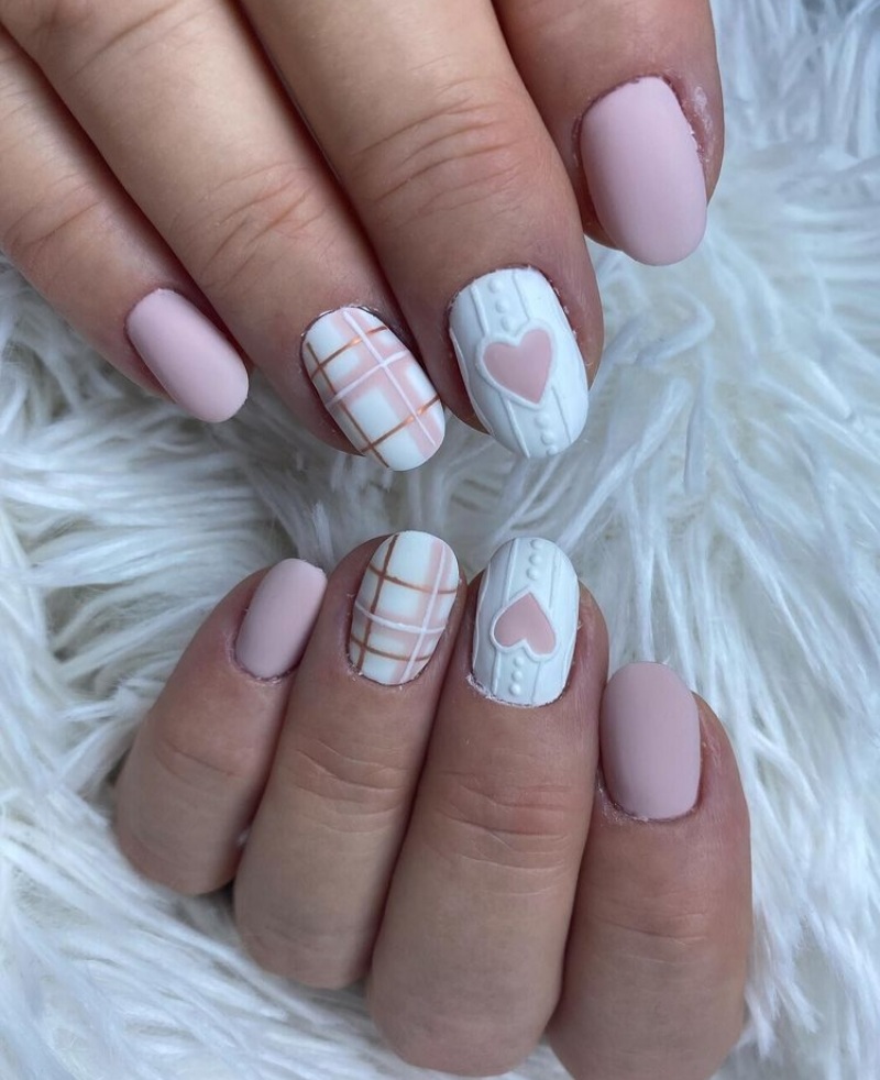 11. Pastel Pink Heart Accents: Show your affection with pastel pink nails featuring heart accents. Paint or apply heart-shaped decals for a sweet and adorable manicure.