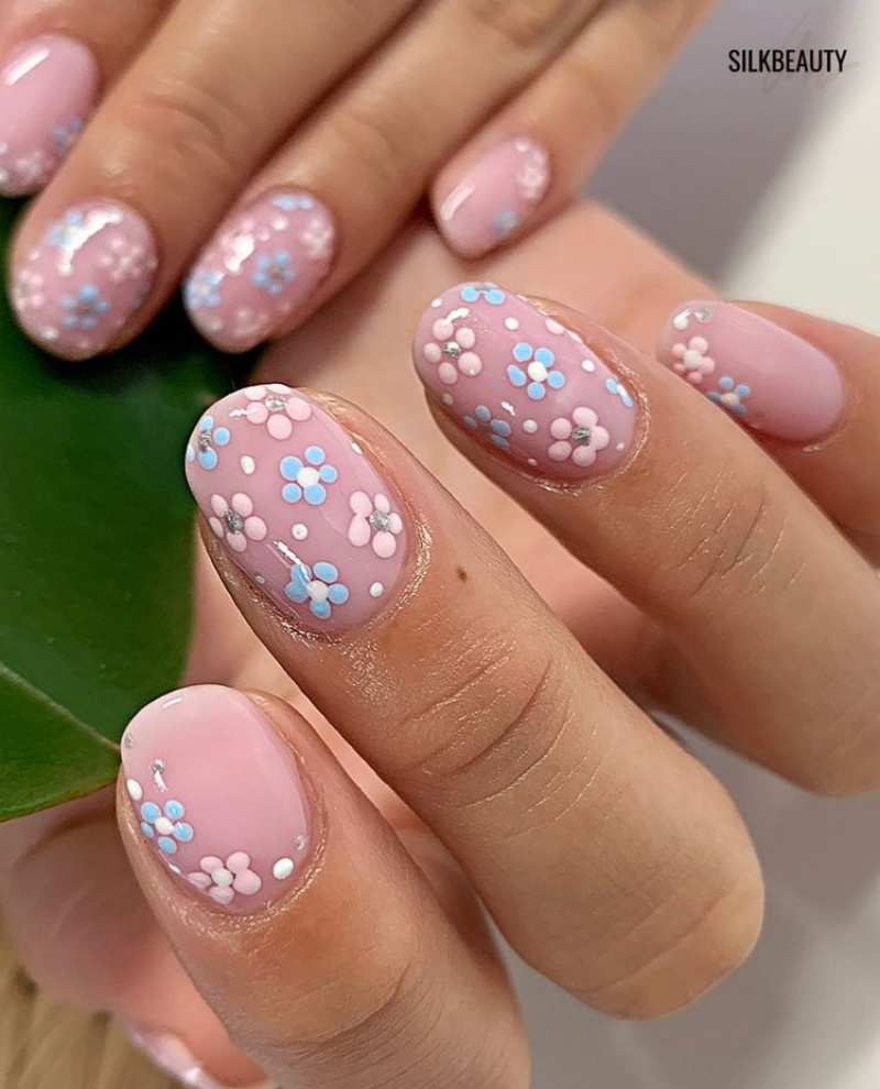 9. Pastel Pink and Rose Gold Accents: Combine the softness of pastel pink with the warmth of rose gold accents. Add rose gold lines, dots, or small embellishments for a trendy and luxurious touch.