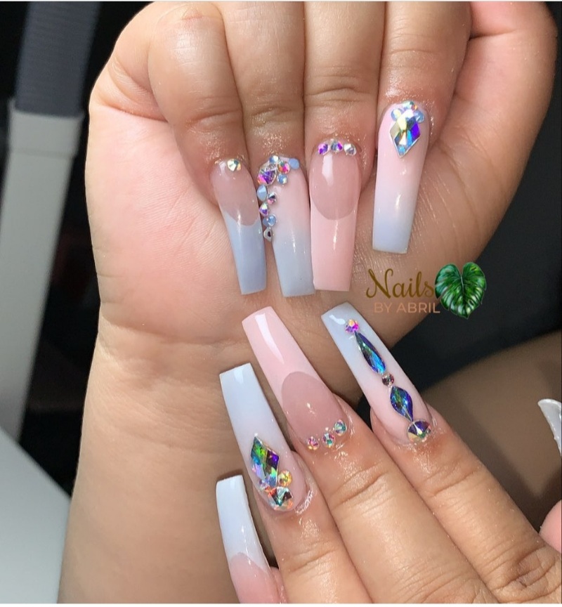 12. Pastel Pink French Fade: Create a seamless transition from a darker shade of pastel pink at the base to a lighter shade towards the tips. This French fade design is subtle and chic.