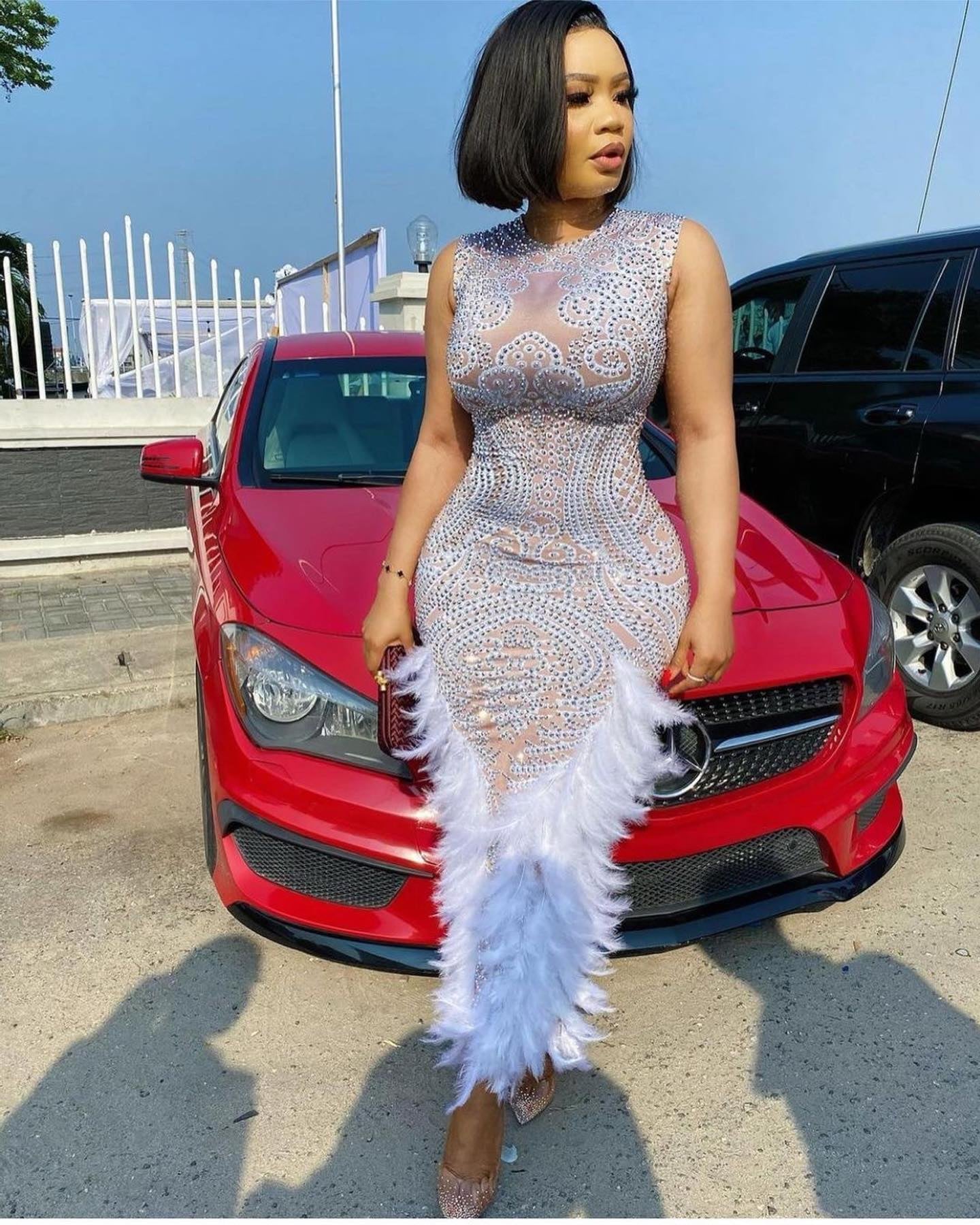 7. Bold Bazin Riche Gowns: Flowing gowns in rich Bazin fabric with elaborate embroidery.