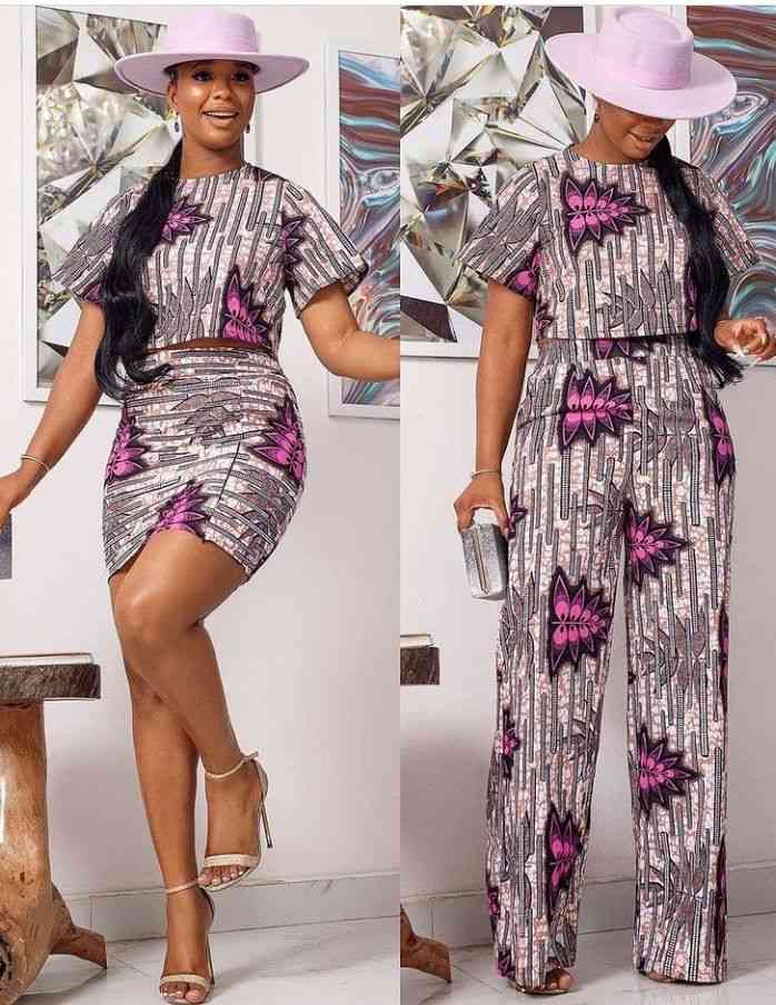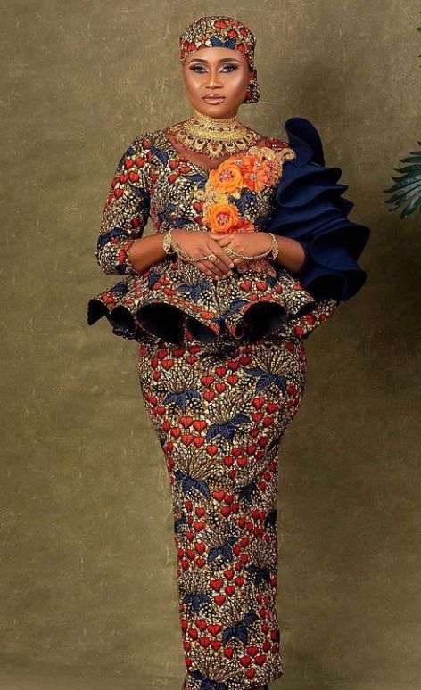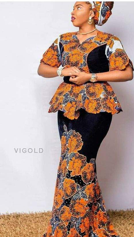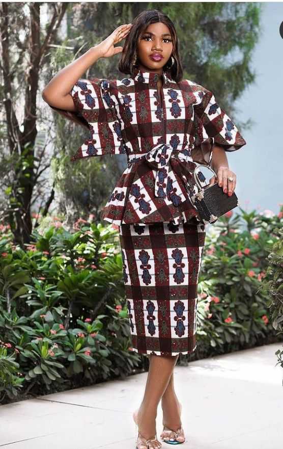 The Ankara peplum top and skirt combination is a classic choice that never goes out of style. The peplum top adds a flattering flare to your waistline, while the matching skirt creates a cohesive and polished look. This outfit is perfect for professional settings or formal events, where you want to make a stylish and sophisticated impression.