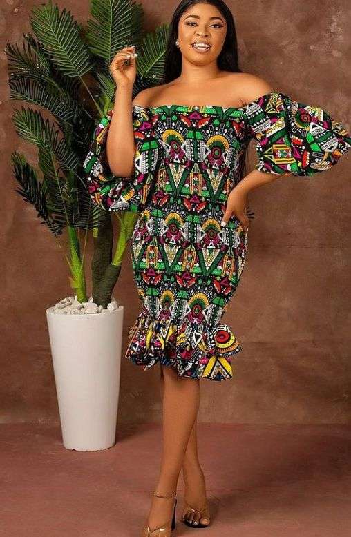 Show off your shoulders and exude confidence in an Ankara off-shoulder dress. This style combines elegance and playfulness, with its flattering neckline and flowy silhouette. Whether you opt for a knee-length or maxi length, this dress is guaranteed to make a fashion statement at any event.