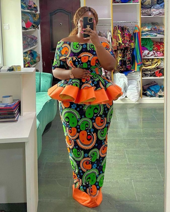 - Off-Shoulder Tops: Combine your Ankara skirt with an off-shoulder top for a flirtatious and fashionable look. This pairing is ideal for dates or brunch with friends. The off-shoulder design adds a touch of allure while balancing the boldness of the Ankara print.