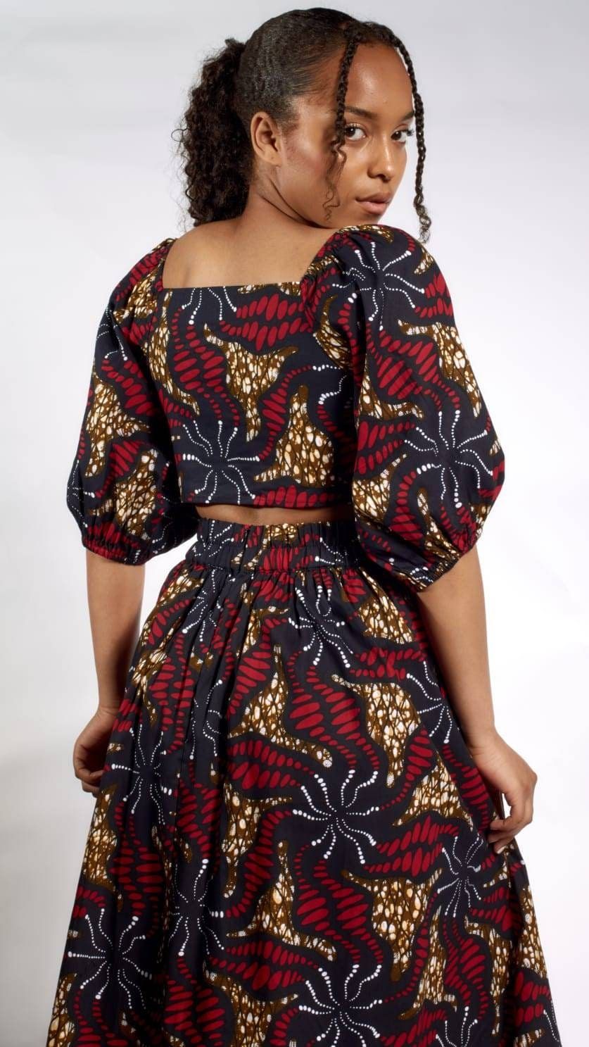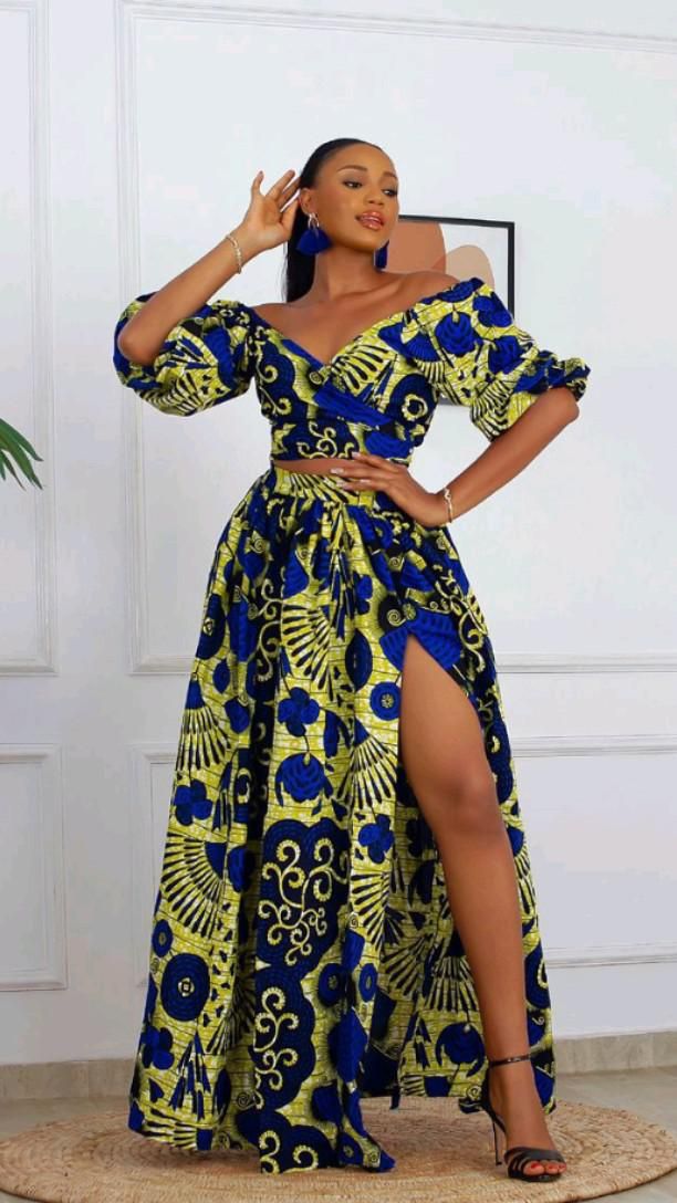 - Crop Tops: Embrace a playful and youthful vibe by pairing your Ankara skirt with a chic crop top. This combination is perfect for casual outings or summer parties. Choose a crop top in a solid color that accents a hue in the Ankara print.