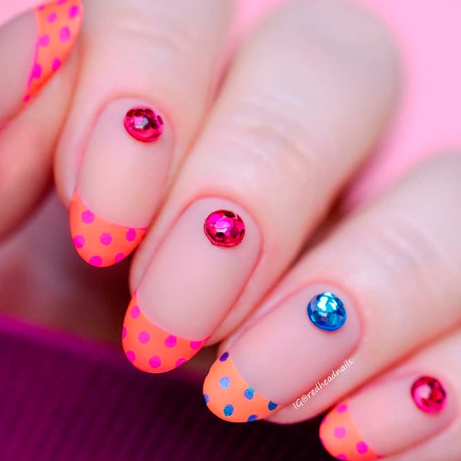 With stars neon French tip nails, you are going to get one of the best 4th of July manicures. Paint your nails with a nude base color, like OPI Bubble Bath, and accentuate two fingers on each hand with white and hot pink or red French tip nails. Now draw stars using the same color but on the opposite nails – pink stars over white tips and white stars over pink ones.