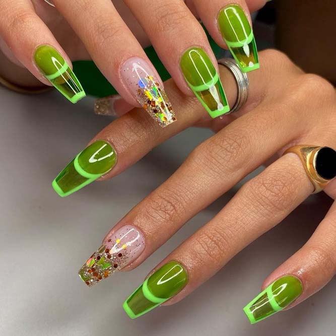 Looking for St Patrick’s Day manicure ideas? Your search stops here. Green French tip nails are a wonderful option to pay tribute to the holiday without overdoing it. Find the best green nail polishes in Manucurist and Essie. You are also free to adorn your mani with the clover print for more impact.