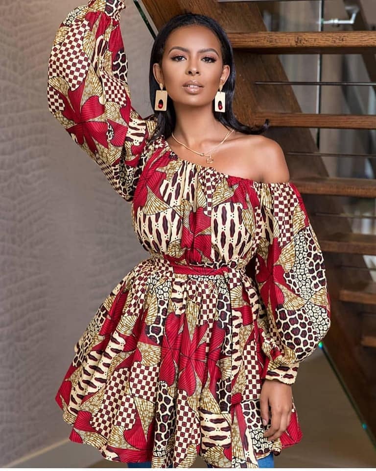 - Think Ankara print jumpsuits, high-low dresses, and off-shoulder tops. The modern twist to conventional designs adds a touch of contemporary to the classic.
