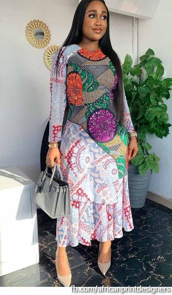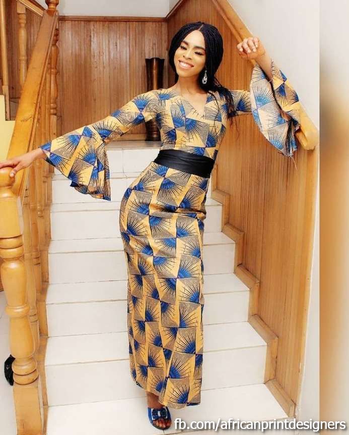 1. Elegant Ankara Midi Dresses: Midi dresses are both modest and stylish, perfect for a church setting. In 2022-2023, we see a rise in A-line Ankara midi dresses with bell or bishop sleeves, emphasizing both tradition and modernity.