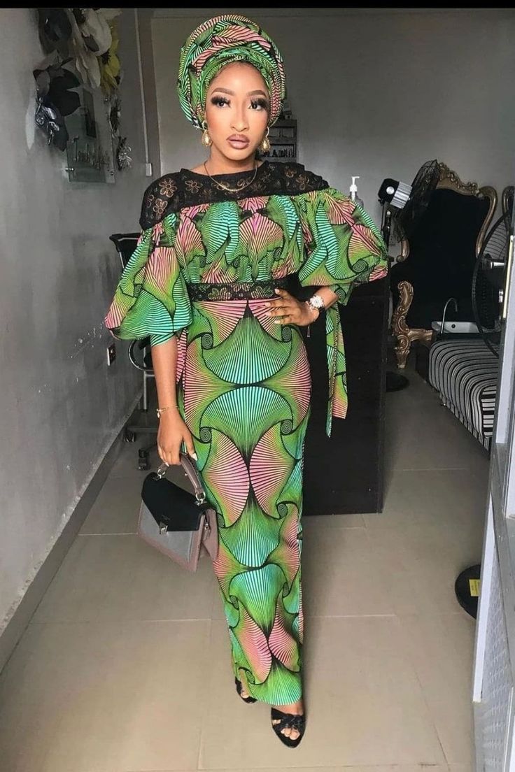 Another trendy Ankara gown style is the off-the-shoulder gown. This design combines elegance and flirtiness, making it perfect for a night out or a special occasion. The unique Ankara fabric adds a distinctive touch to the off-the-shoulder design, creating a truly eye-catching look.