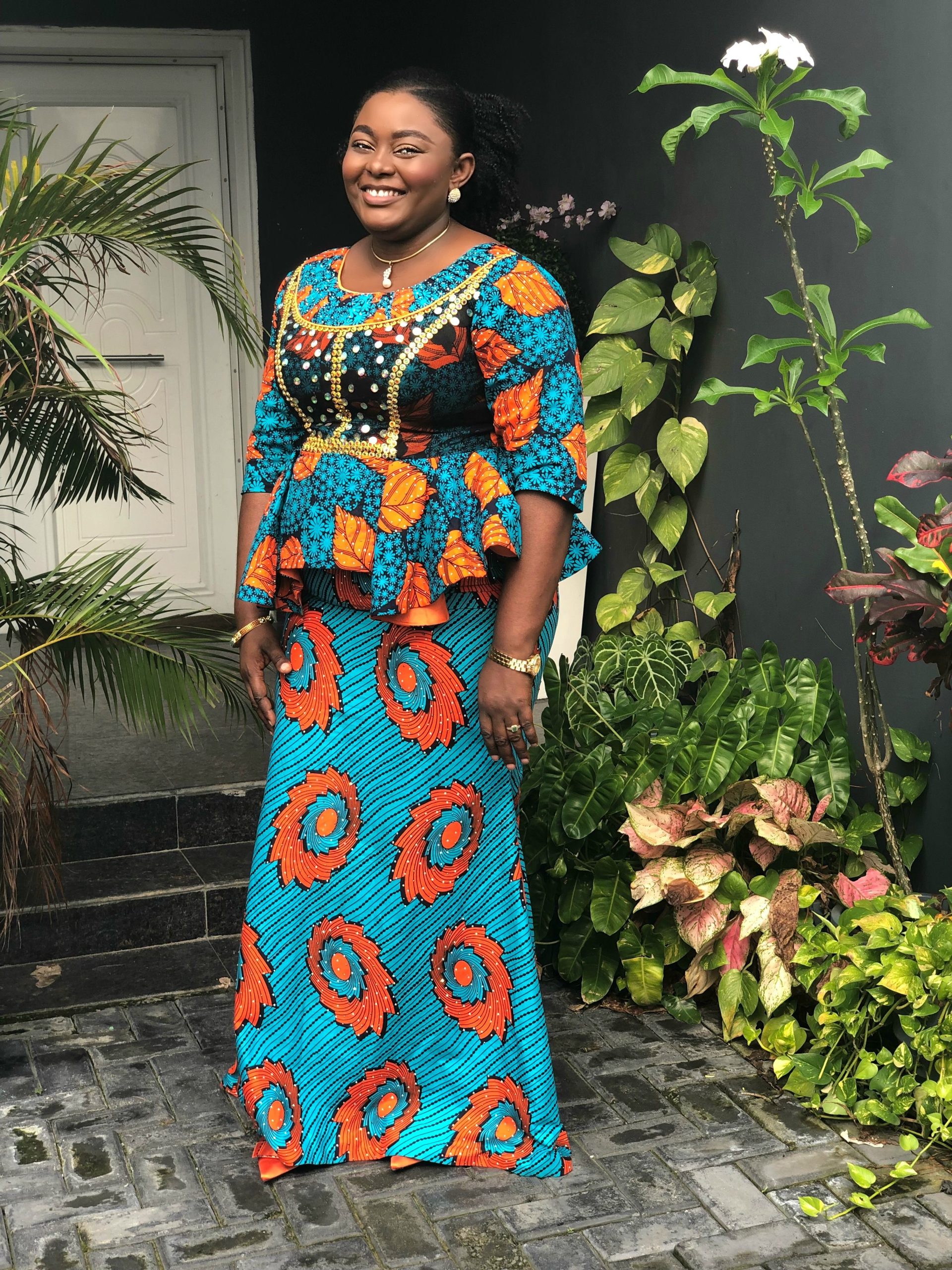5. Accessories and Finishing Touches: Complete your Ankara skirt and blouse outfit with the right accessories. Choose statement jewelry, such as chunky earrings or a bold necklace, to enhance the overall look. Consider adding a wide belt to cinch the waist and create a flattering silhouette. Don’t forget to pair your outfit with stylish shoes, such as strappy heels or colorful sandals, to elevate your ensemble.