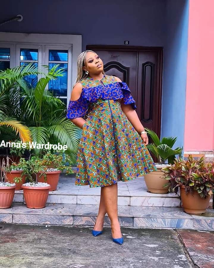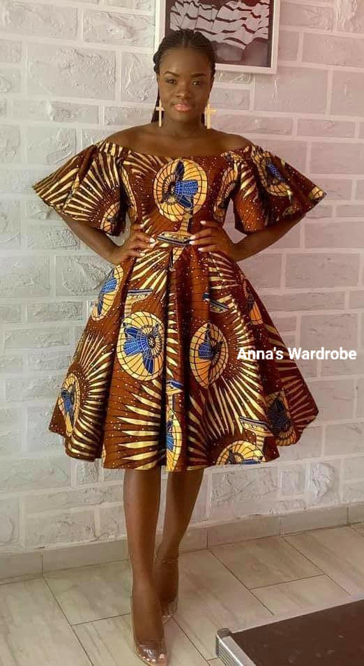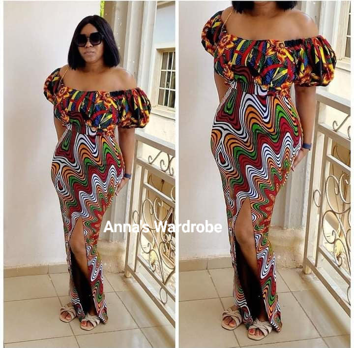 5. Off-shoulder Elegance πŸ‘‘: Off-shoulder Ankara dresses or tops give a playful yet elegant vibe, highlighting the neckline and shoulders beautifully.
