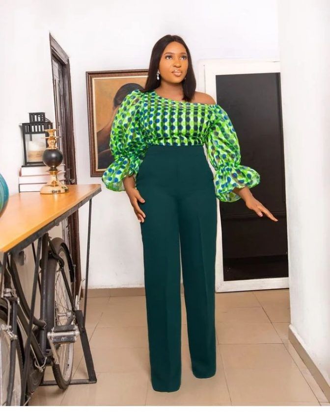- Wrap Tops: A wrap-style Ankara top is universally flattering and can be paired seamlessly with both palazzos and tapered trousers.
