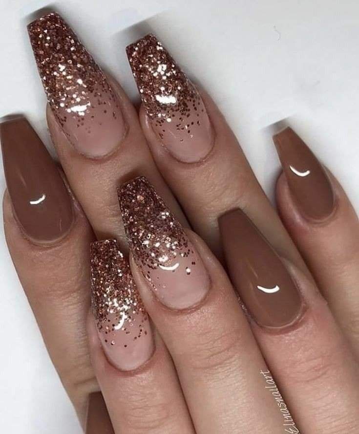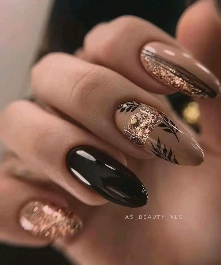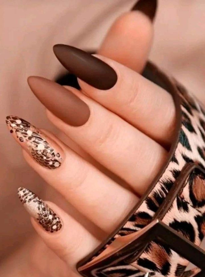 Celebrate the beauty of falling leaves with nail art inspired by autumn foliage. Choose warm shades of orange, red, and brown as your base colors, and create delicate leaf designs using nail stamping or freehand painting techniques. You can also add a touch of gold or copper accents to enhance the rustic feel of the design.
