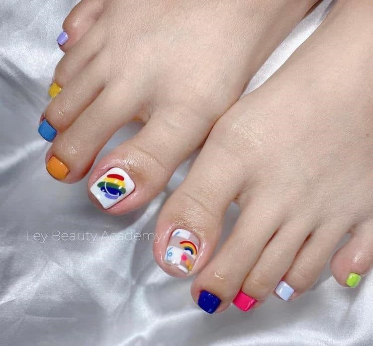 Brighten up your little girl’s toes with a playful and vibrant pedicure. Choose a rainbow of colors and create fun patterns like polka dots, stripes, or even tiny flowers. These cheerful designs will bring a smile to her face and showcase her unique personality.