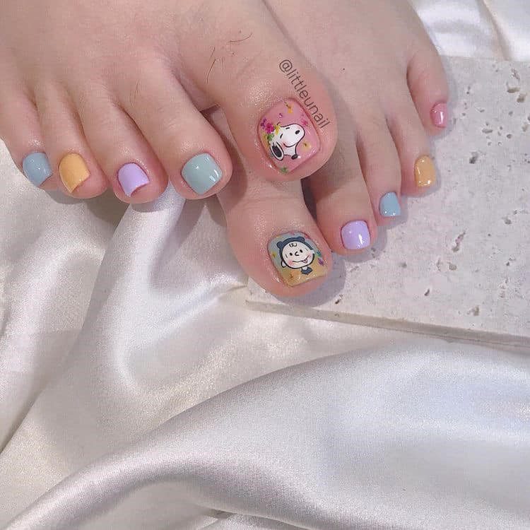Make your little princess feel like royalty with a pedicure fit for a queen. Use soft pastel colors like pinks, purples, and baby blues. Add delicate details such as glitter, tiny rhinestones, or even miniature crowns for a regal touch.