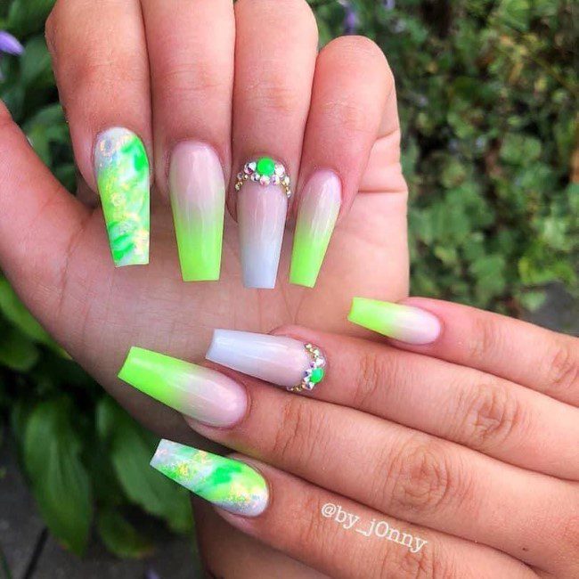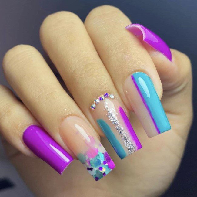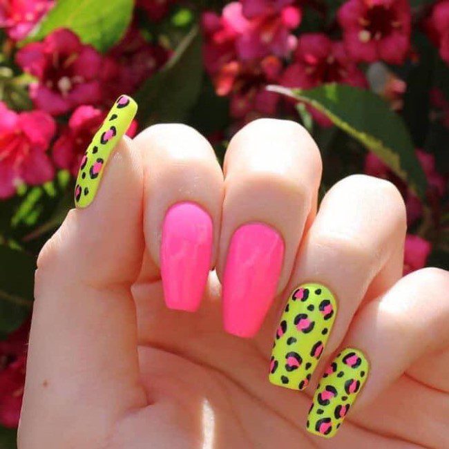 Capture the essence of summer by incorporating tropical elements into your manicure. Choose bright and bold colors like vibrant greens, blues, and yellows reminiscent of lush palm trees, exotic fruits, and clear blue skies. Add playful accents like palm tree designs, hibiscus flowers, or tropical leaf patterns for a fun and festive look.