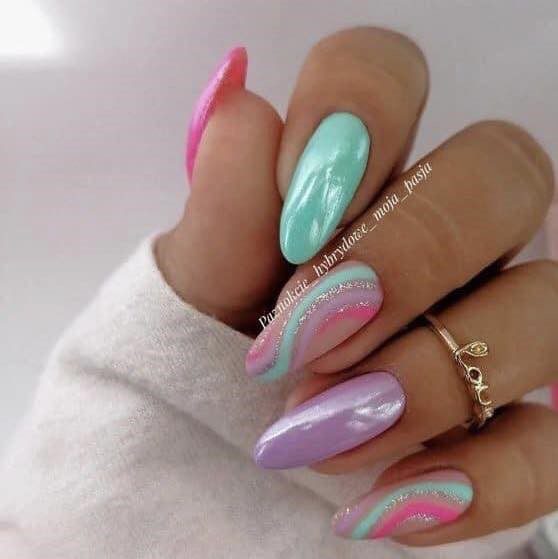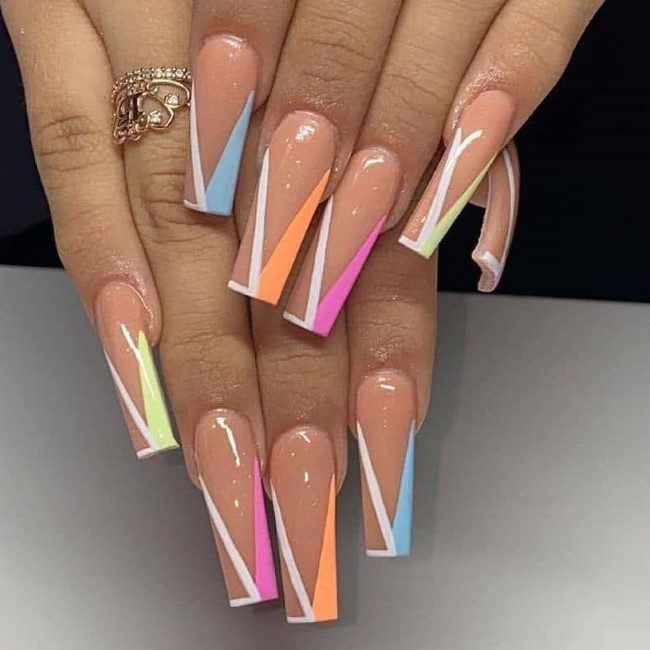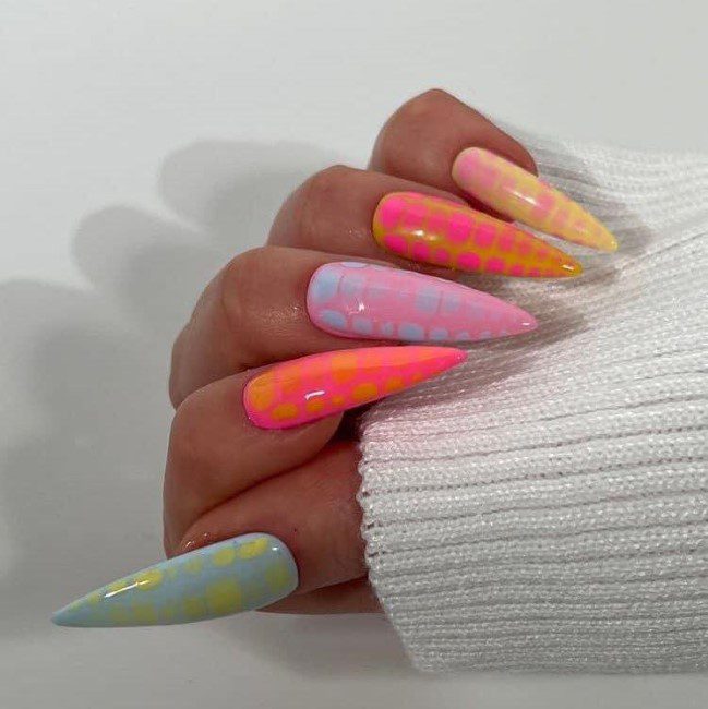 Experiment with fun and playful patterns for a unique summer manicure. Incorporate elements like polka dots, stripes, geometrical shapes, or even cute summer-themed characters like flamingos or ice cream cones. Mix and match different patterns and colors to create a vibrant and eye-catching manicure that showcases your creativity.