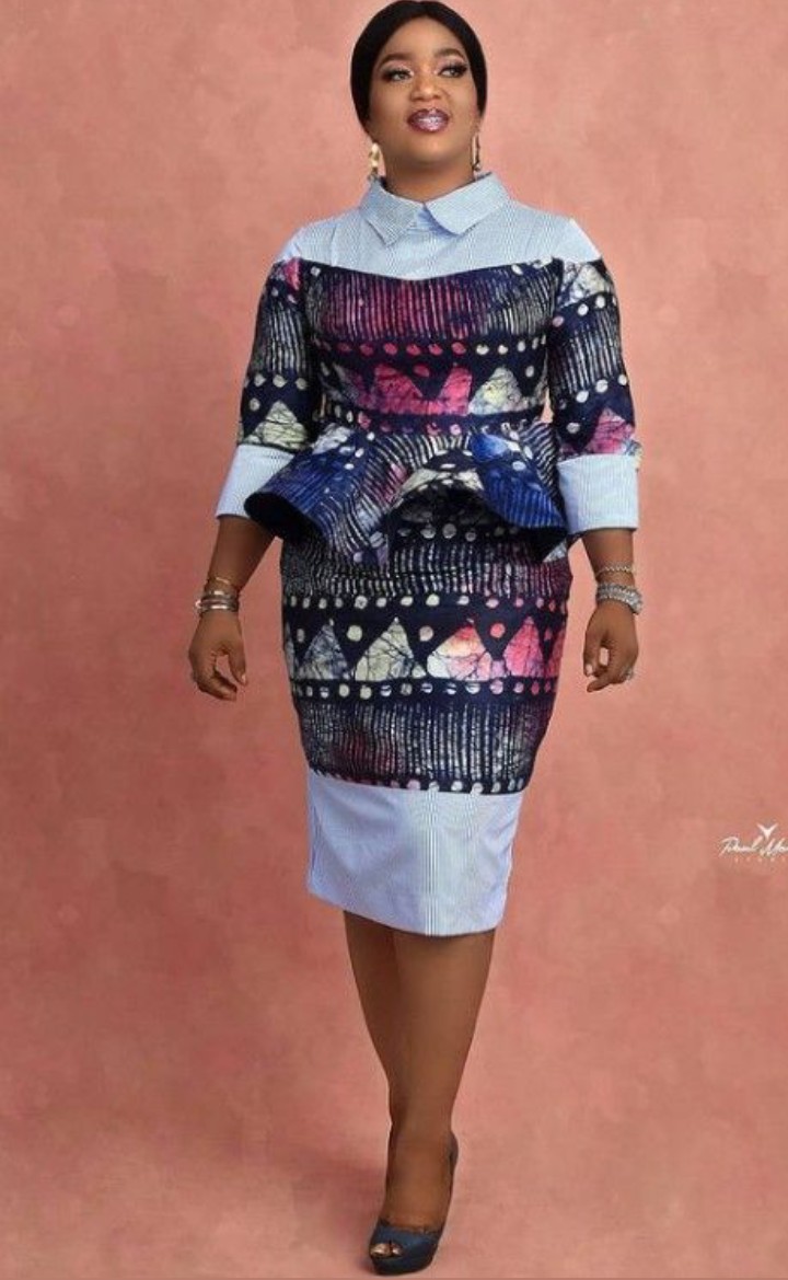 - A peplum top paired with a fitted Ankara skirt adds a touch of femininity to your work attire. Opt for neutral accessories to balance the vibrant print.