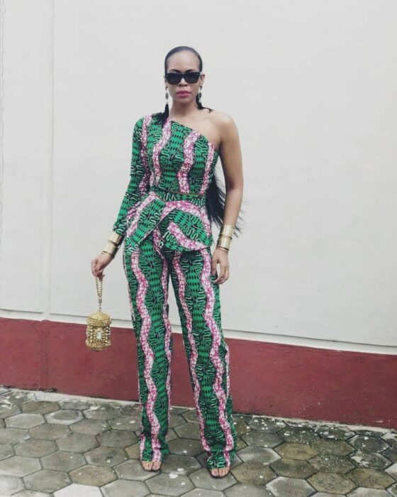 7. Ankara Palazzo Jumpsuit: Embrace the ease of an Ankara palazzo jumpsuit that requires minimal effort for maximum impact. Complete the look with bold accessories and statement shoes.
