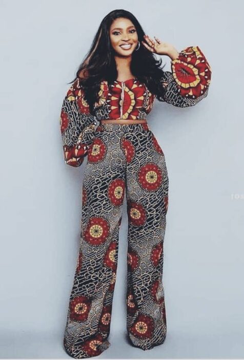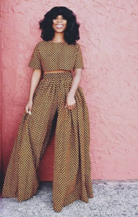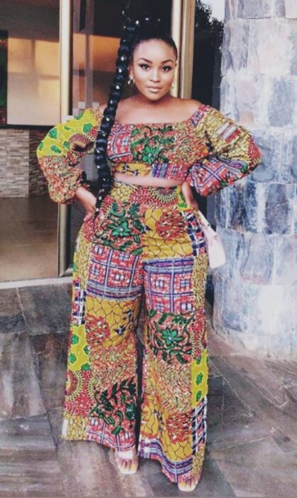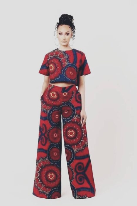 6. Ankara High-Waisted Trousers with Crop Top: Create a fashion-forward look by pairing high-waisted Ankara trousers with a stylish crop top. This combination accentuates your waist and adds a modern touch.