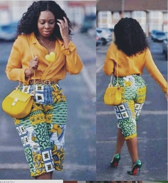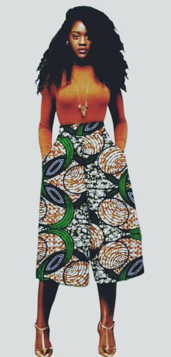 2. Ankara Culottes: Experiment with Ankara culottes for a trendy and comfortable outfit. Opt for a coordinating top or a contrasting blouse to create an eye-catching ensemble.