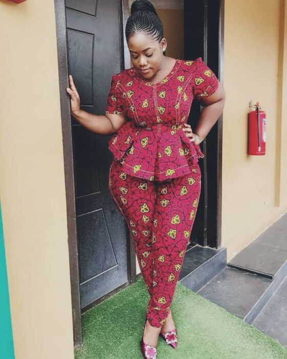4. Ankara Cigarette Pants: Elevate your style with fitted Ankara cigarette pants that exude elegance and sophistication. Pair them with a structured blazer for a polished and powerful ensemble.
