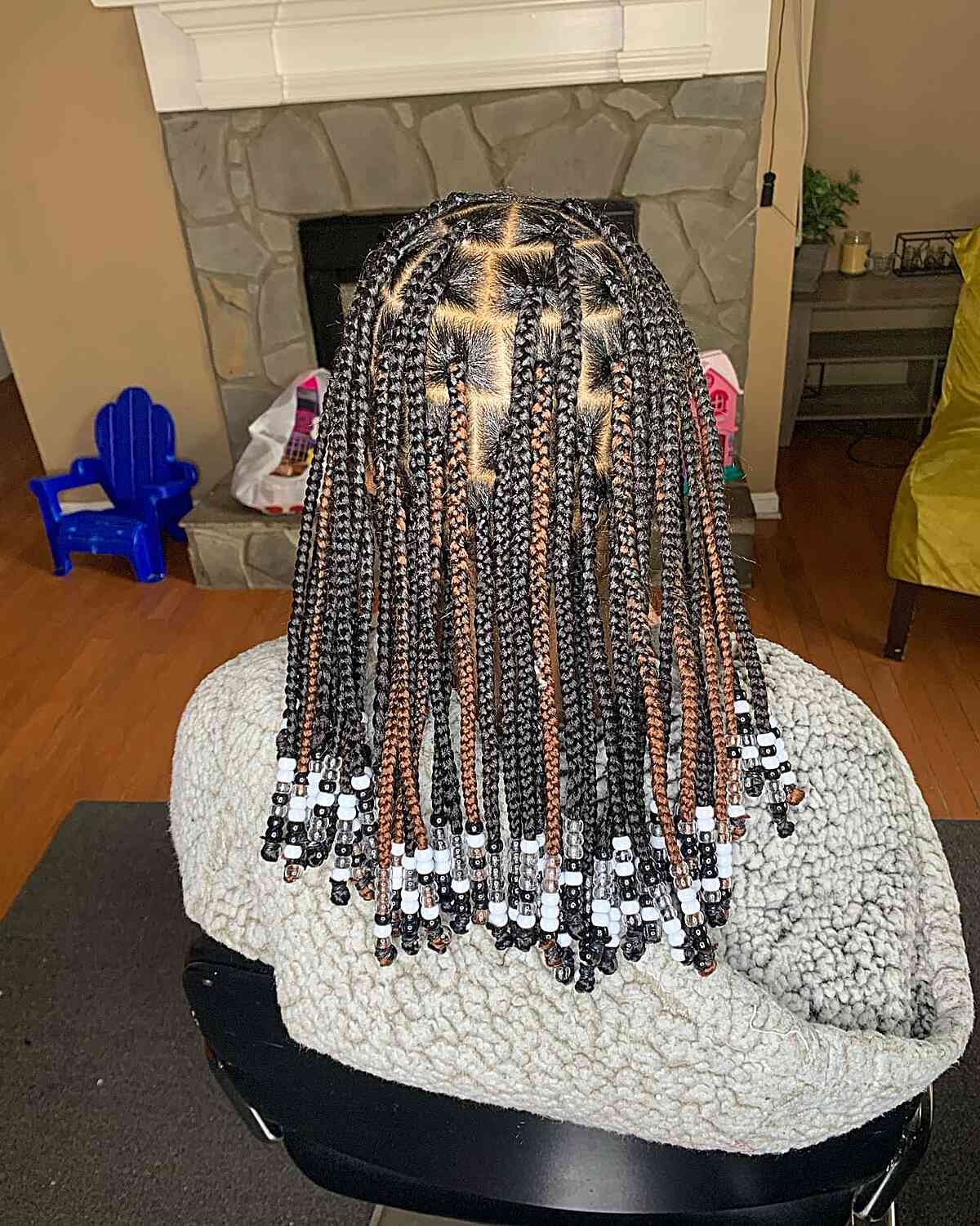 black-knotless-braidsw-with-brown-highlights-and-black-and-white-beads