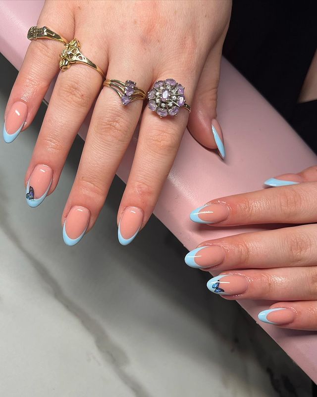 Blue-French-Almond-Nails-With-Butterflies