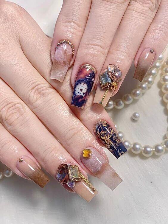 5. Complementing Accents: Brown serves as a perfect base for various nail art designs and embellishments. Whether you’re pairing it with gold accents for a touch of glamour or with pastel flowers for a feminine touch, brown ensures that your nail art stands out.