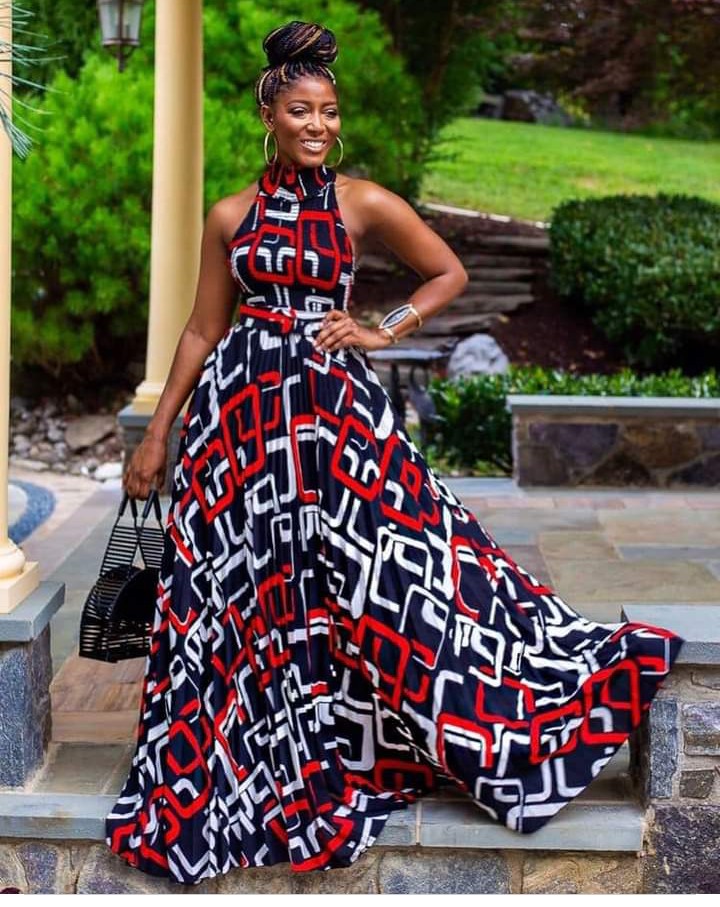 14. Ankara Halter Neck Maxi Dress: Exude elegance with an Ankara halter neck maxi dress that showcases your shoulders and captures attention.