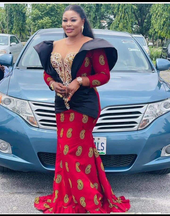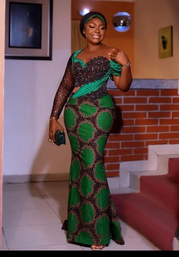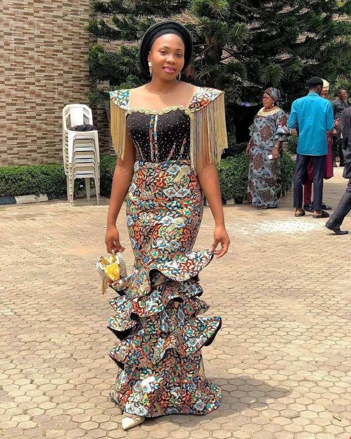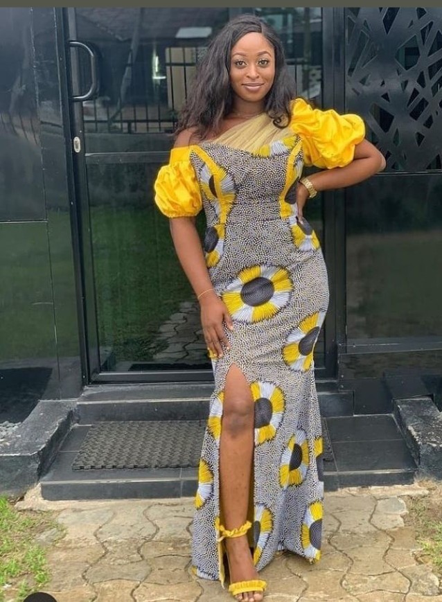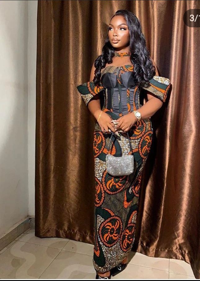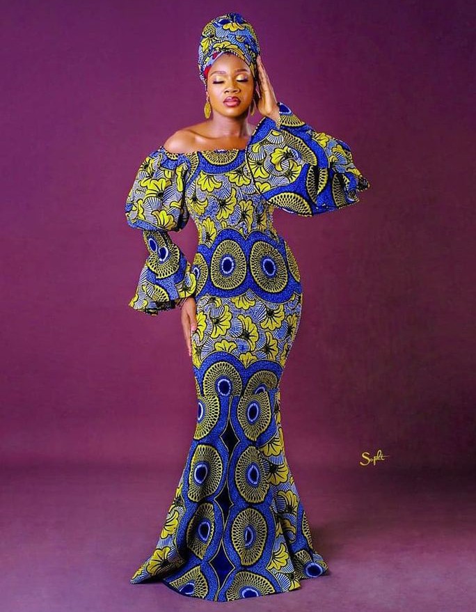 11. Ankara Off-Shoulder Mermaid Gown: Make a glamorous statement with an Ankara off-shoulder mermaid gown that hugs your curves and exudes confidence.