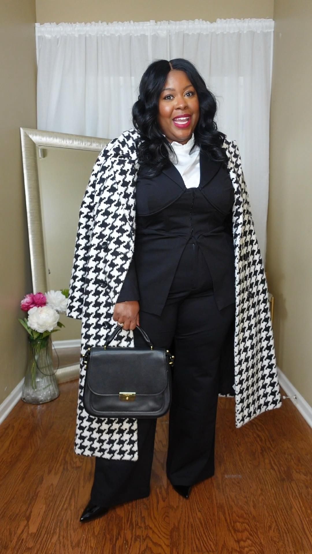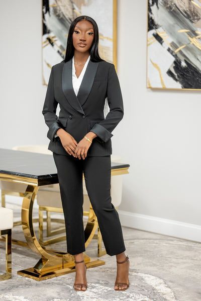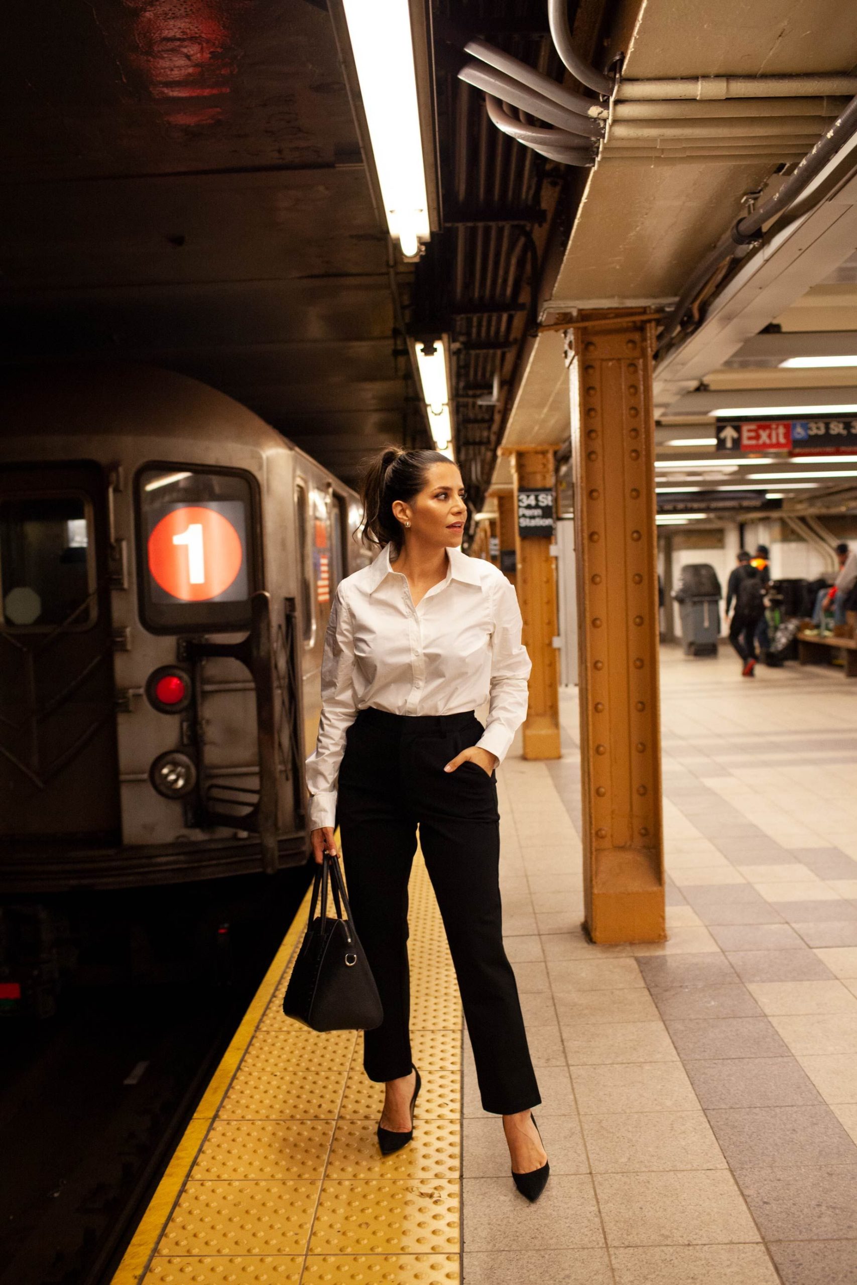 The timeless black and white combination never goes out of style. Opt for a well-tailored black trousers/pants and pair it with a crisp white blouse. Add a black blazer for a polished and sophisticated touch. Complete the look with black pumps and minimal accessories.