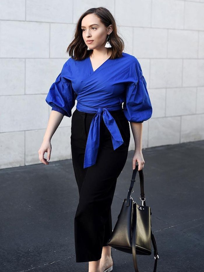Embrace a chic and tailored look with slim-fit or wide-leg trousers/pants. Opt for high-quality fabrics that drape beautifully and enhance your silhouette. Pair them with a fitted blouse or a tailored shirt for a sleek and professional appearance. Add a statement belt to accentuate your waist and complete the ensemble with heels or loafers.