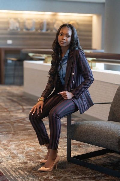 Experiment with patterns to add visual interest to your outfit. Choose trousers/pants with subtle patterns like pinstripes, houndstooth, or windowpane checks. Pair them with a solid-colored blouse in a coordinating shade. Balance the patterns by keeping the rest of the look simple and refined.