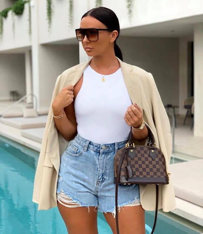 For a relaxed yet stylish look, pair your favorite denim jeans with a well-fitted blazer. Opt for a classic blue denim or experiment with different washes and cuts to suit your personal style. Pair it with a white tee or a striped shirt for a timeless appeal. Complete the outfit with a structured blazer in a neutral tone like black or gray. Finish off the look with ankle boots or white sneakers for a touch of casual elegance.