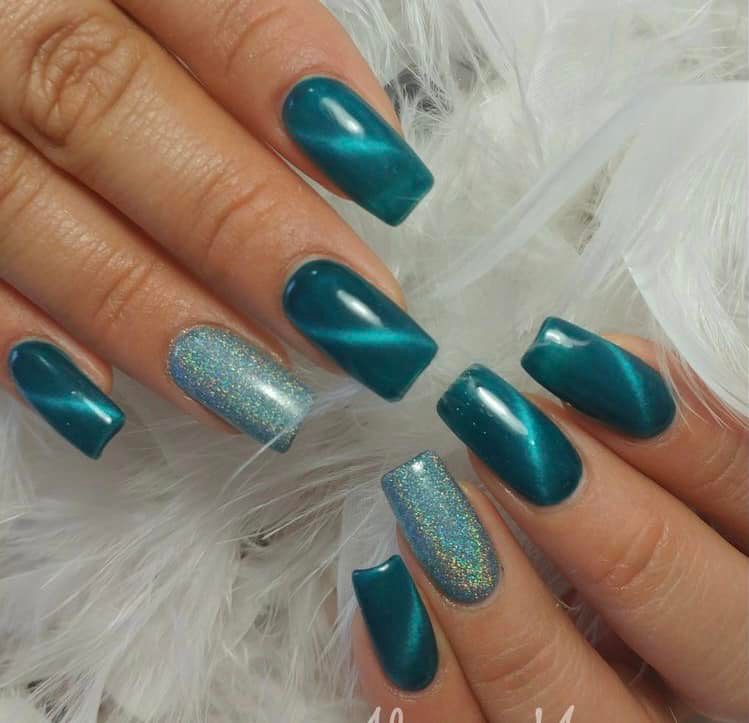 4. Accented Cat Eye: Enhance the allure of your Cat Eye Effect by incorporating additional nail art elements, such as glitter, foil, or intricate designs, to make your nails truly stand out.